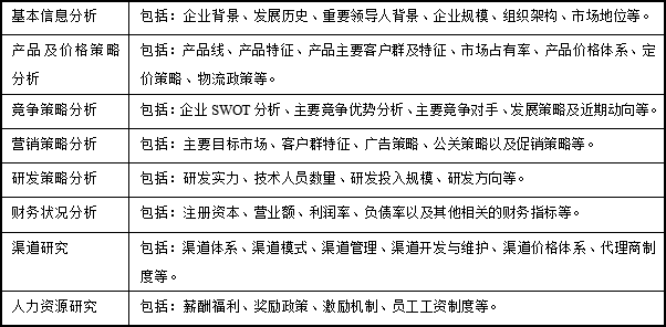 · 各競爭對手在戰(zhàn)略布局、營銷管理、渠道架構(gòu)等方面各自手段及優(yōu)劣勢